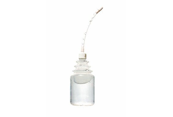 Otáčejte horní částí uzávěru motýlkovitého tvaru, dokud se neodlomí, a na vrchní část lahvičky mírným zatlačením nasaďte kanylu.