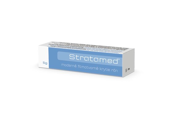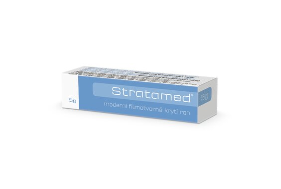 Stratamed je samoschnoucí, nelepivý, průhledný silikonový gel, který lehce přilne k nejvrchnější vrstvě poškozené kůže.